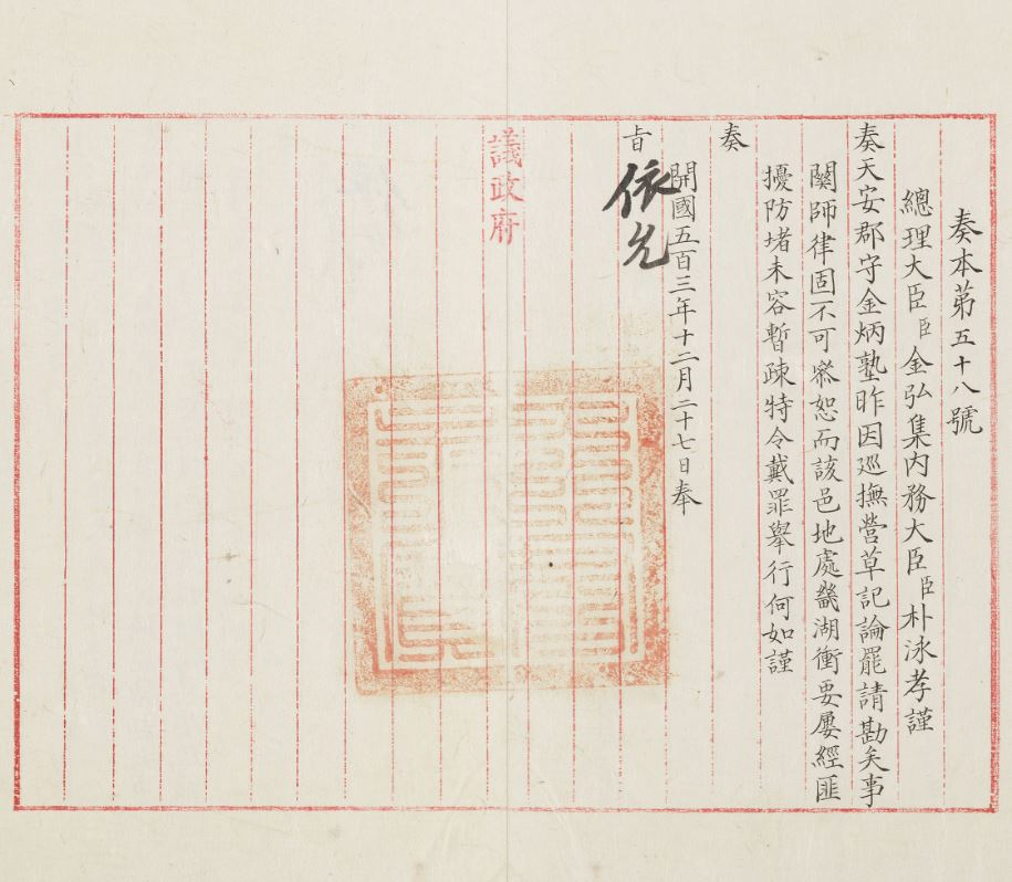 <사진 1> : 『奏本』에 수록된 법무대신 서광범의 상주(규17702, 규장각한국학연구원)