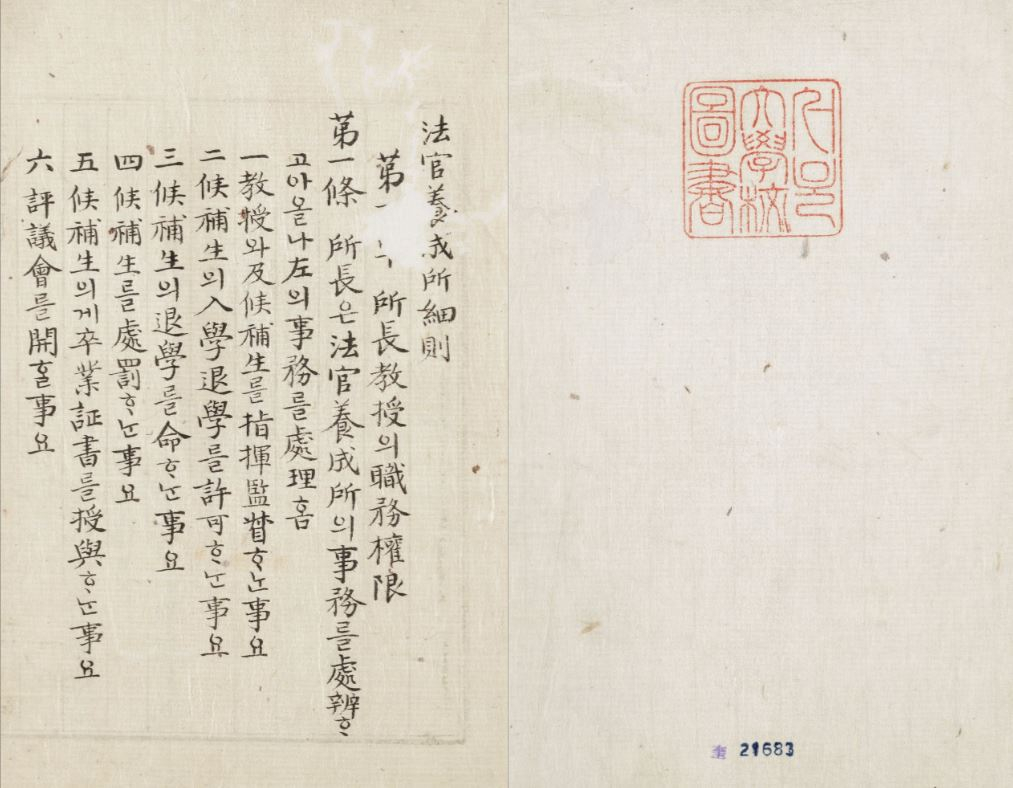 法部 편, 『법관양성소세칙(法官養成所細則)』, 서울대학교 규장각한국학연구원 소장본
