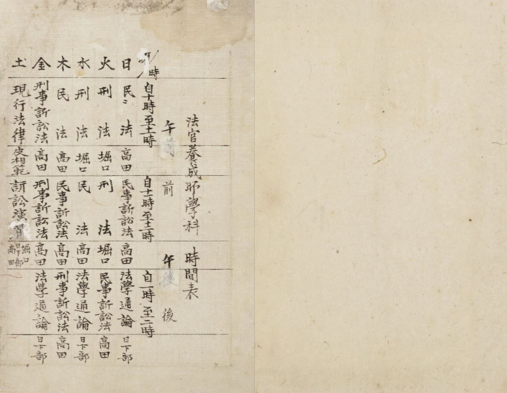 <사진 3> : 법관양성소 학과 시간표(『법관양성소세칙(法官養成所細則)』, 규21683, 규장각한국학연구원)