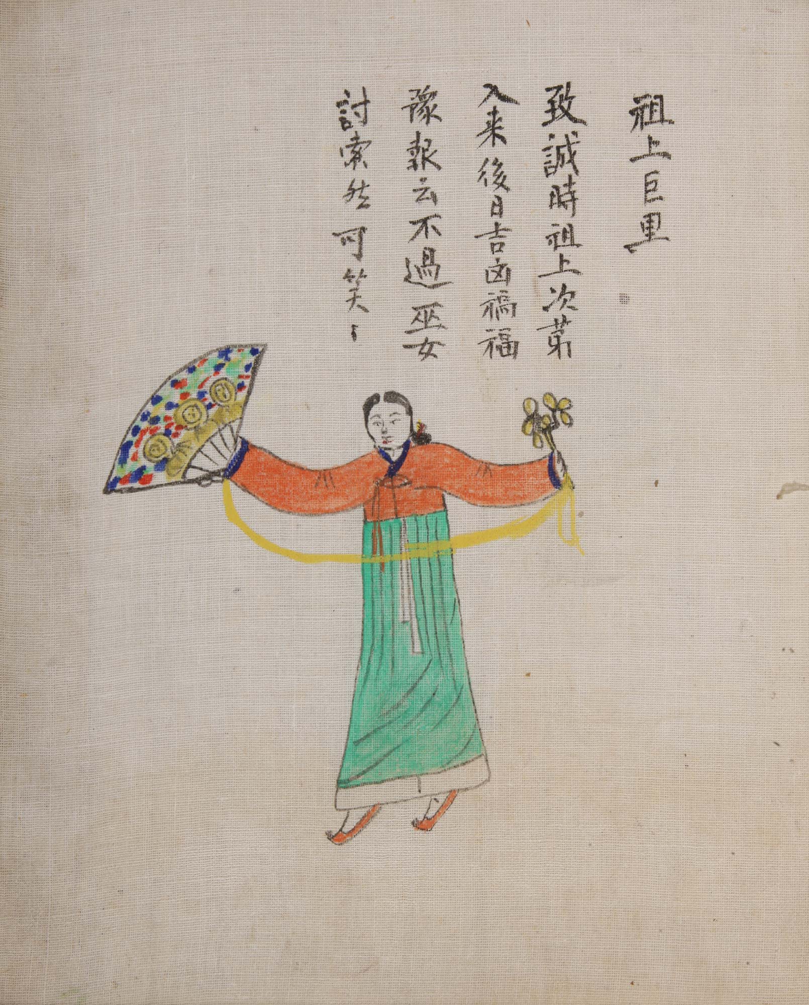 그림 8 가람본 『무당내력』 별지 그림(아래의 노란색 신발은 「창부거리」 무녀의 신발)