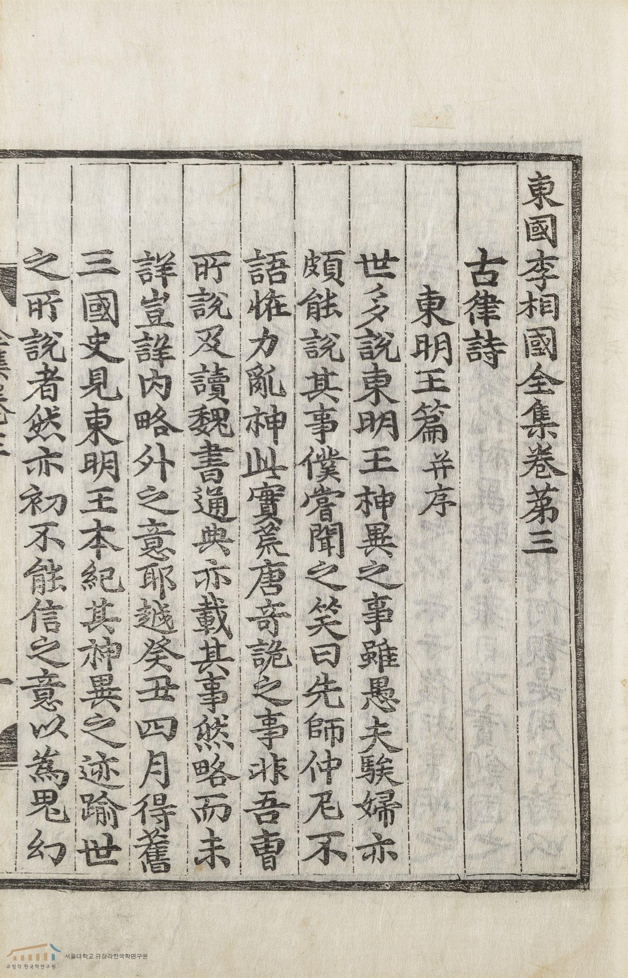 사진 : 『동국이상국집』권3, 고율시의 동명왕편 中.