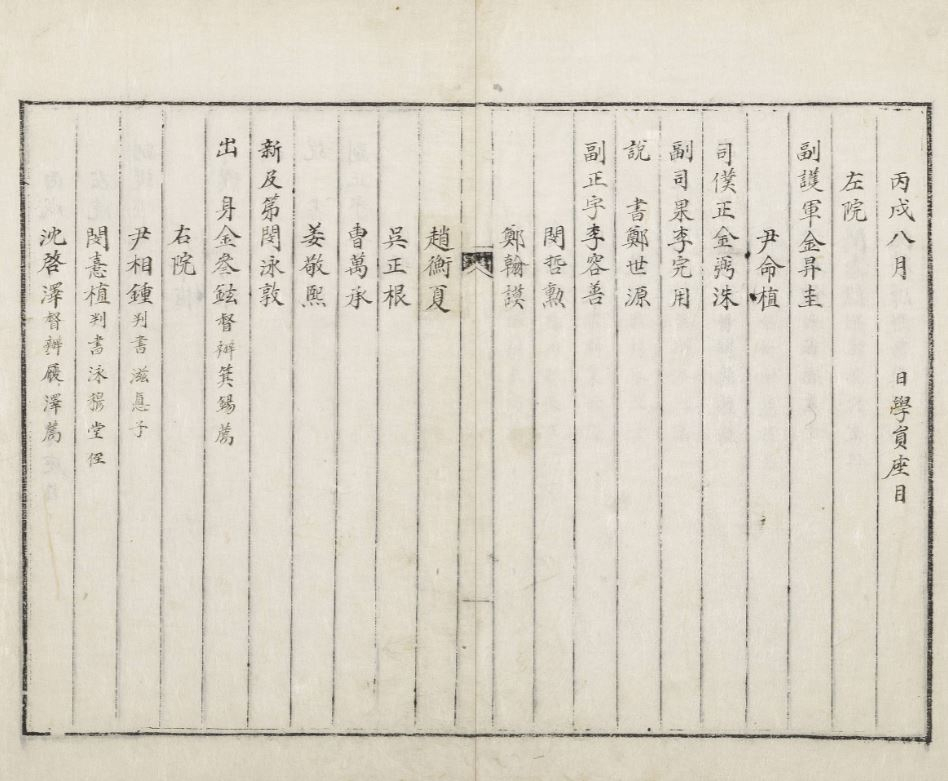 <사진 3> : 『육영공원등록』 「丙戌八月學員座目」(奎3374, 규장각한국학연구원)